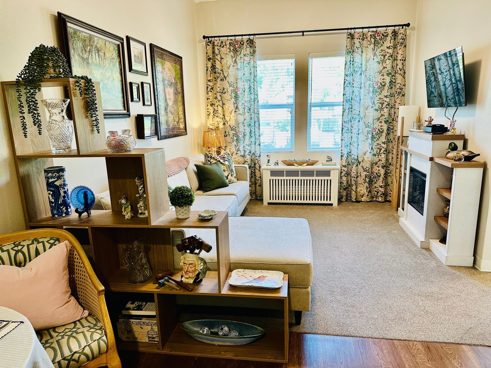 Relocated elderly client into assisted living. To personalize, we gave her all new furniture and window treatments along with client's personal collection of art and accessories.